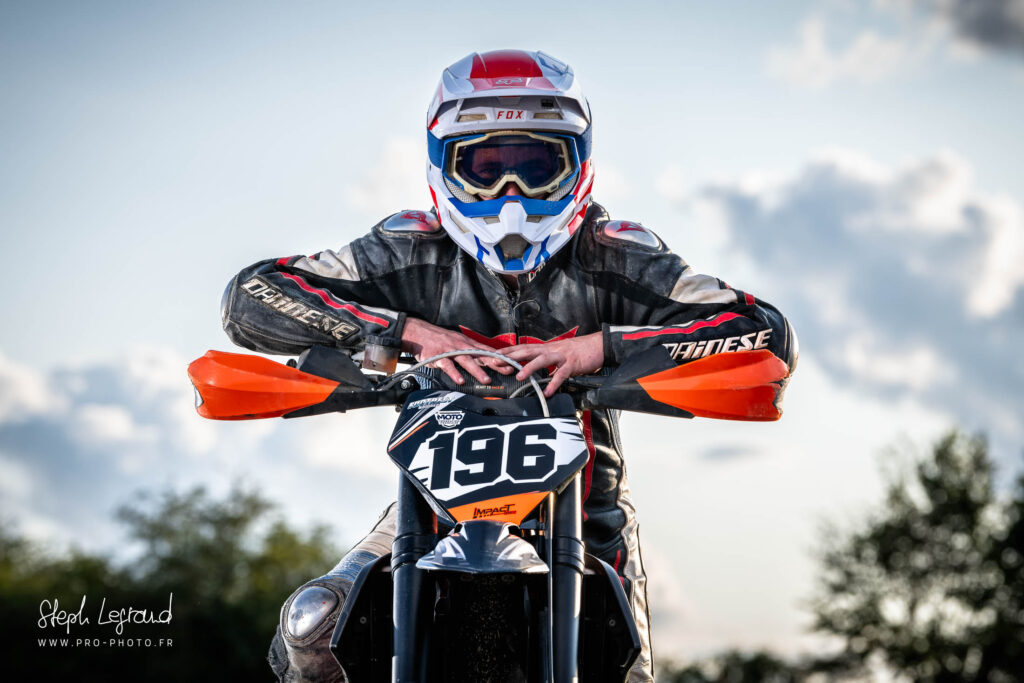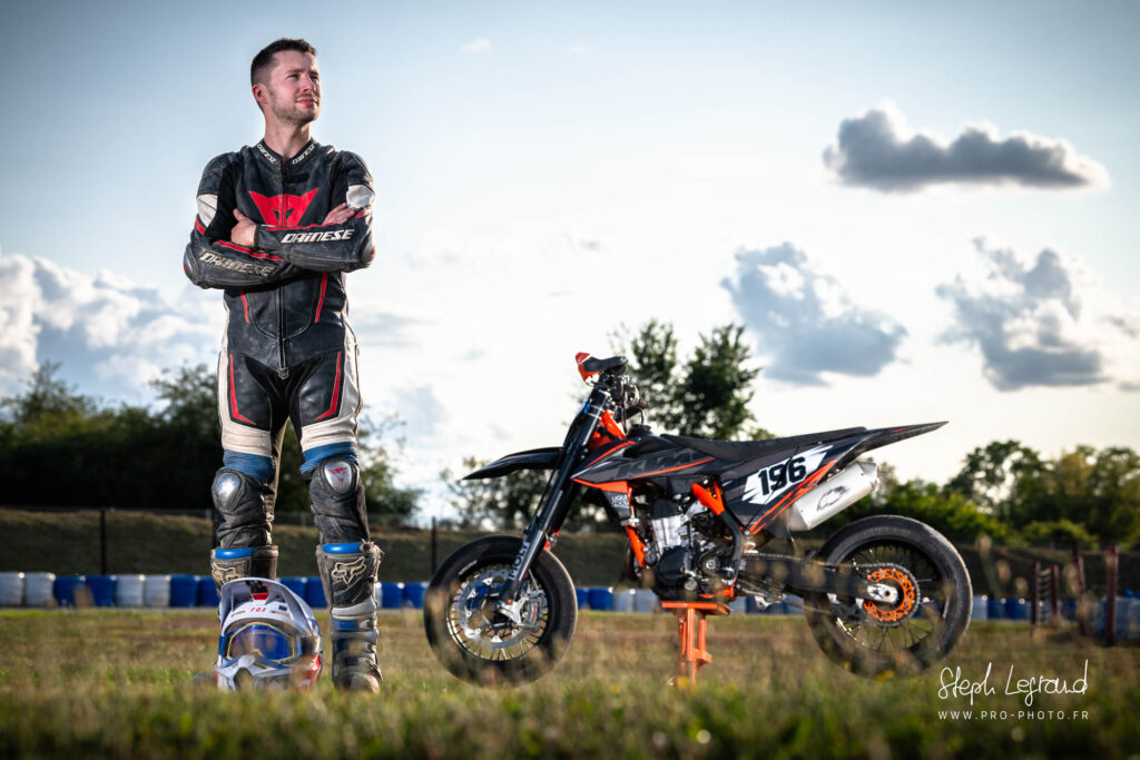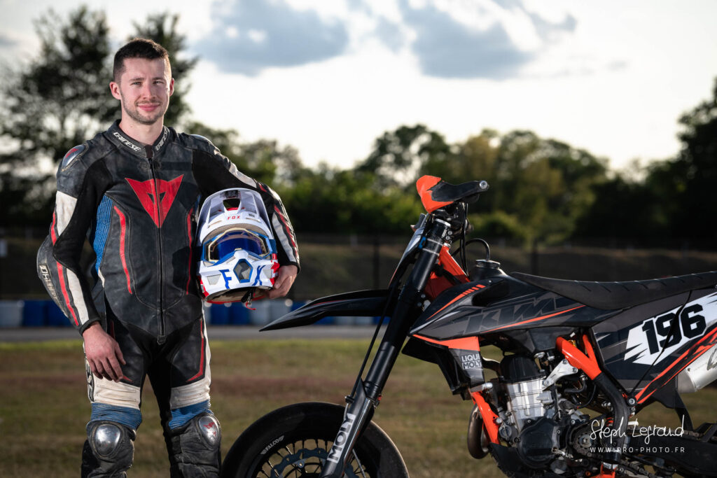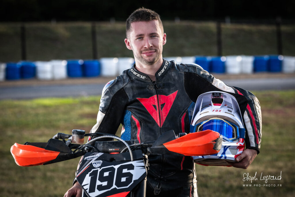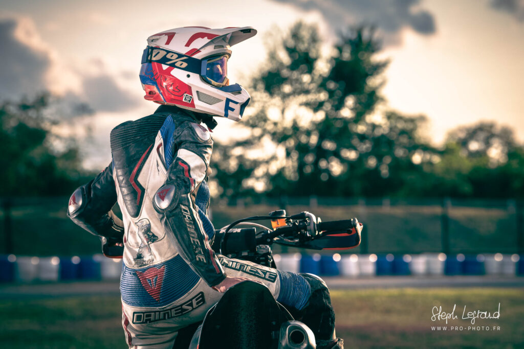 Une série avec Nico, aka Footrest Grinder, lors de l’épreuve de Supermotard de Saint Amand Colombiers en juillet 2023. Et euh, ils sont où les gants ?