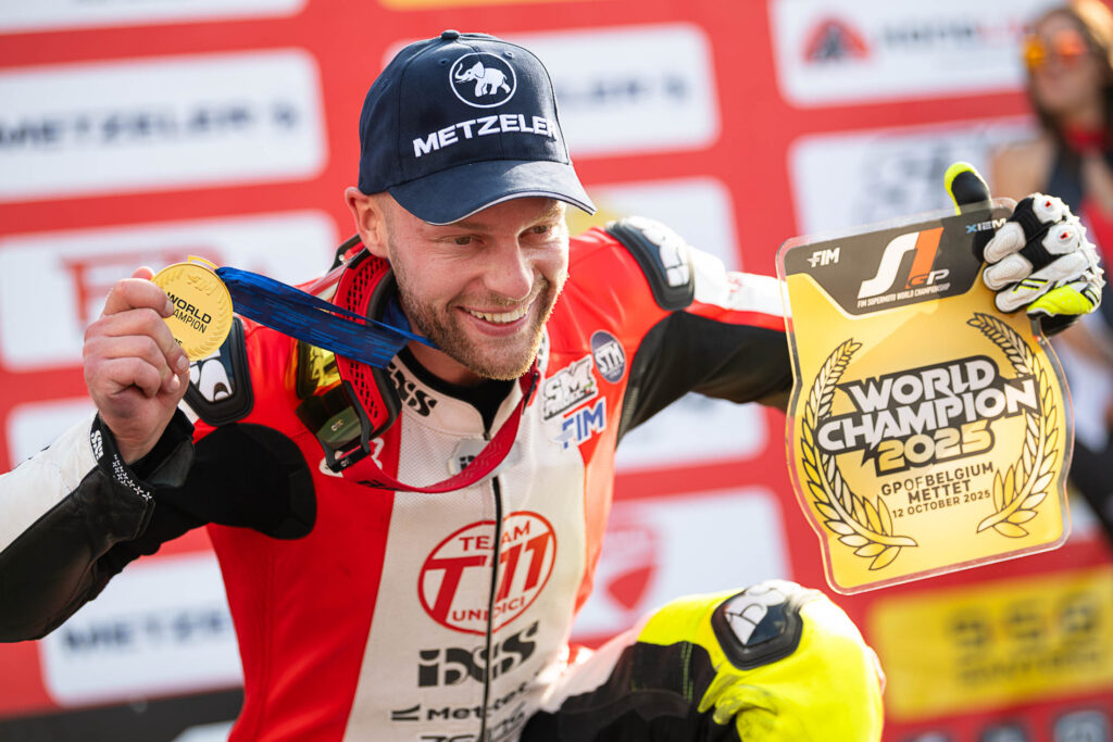 Marc finit par s’imposer, remportant la dernière manche du S1GP et scellant son cinquième titre mondial avant de triompher dans le Superbiker, sa huitième couronne à Mettet. Ces images capturent l’intensité, la rivalité et la grandeur d’un champion au cœur de la bataille.