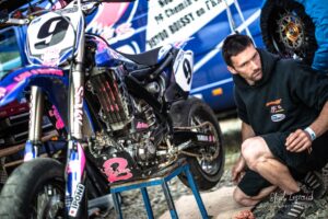 Cette série est… un peu en retard. Il s’agit d’une journée de course en Championnat de France de Supermotard avec Waren Bougard à Lohéac — en 2012. Elle était restée dans les cartons. Waren roulait pour le team Les 2 Roues, et se battait aux avant-postes du Championnat de France, avec Sylvain Bidart et Aurélien Grelier.